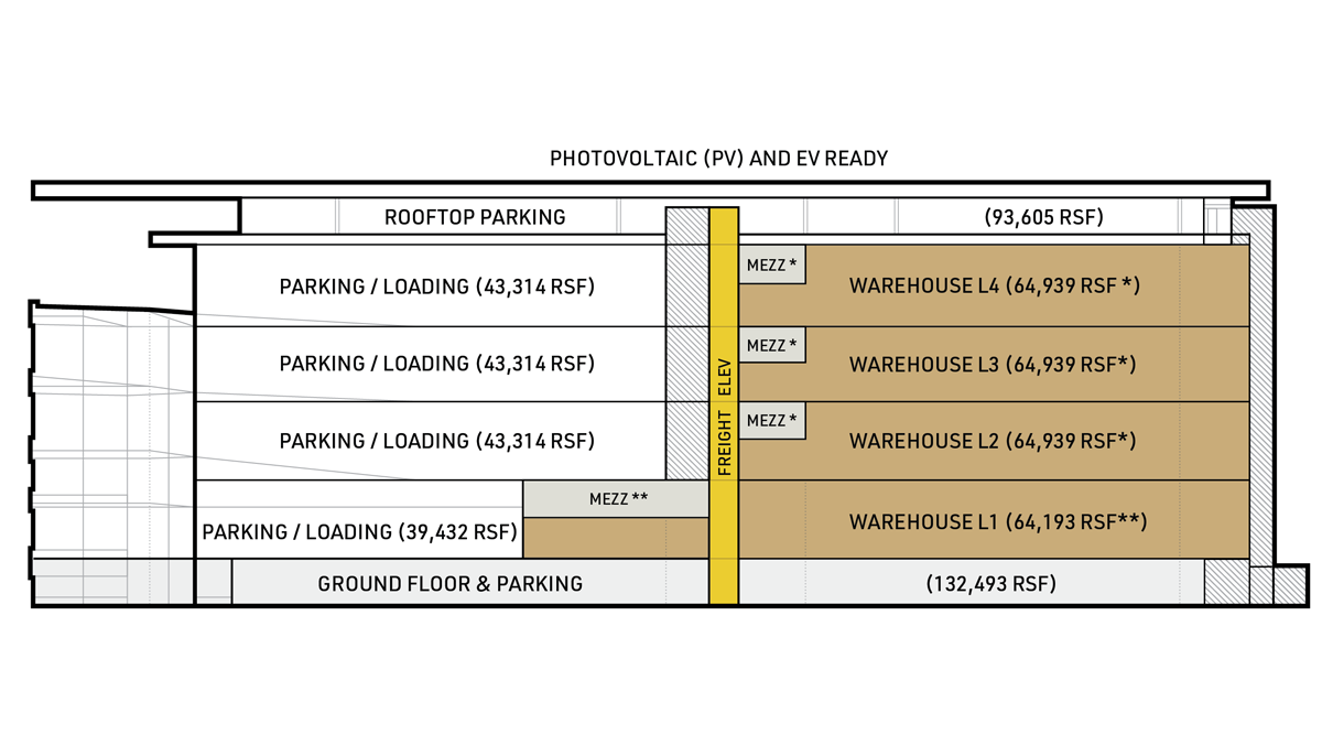 • 4 Levels of Warehouse + Ground & Roof Parking